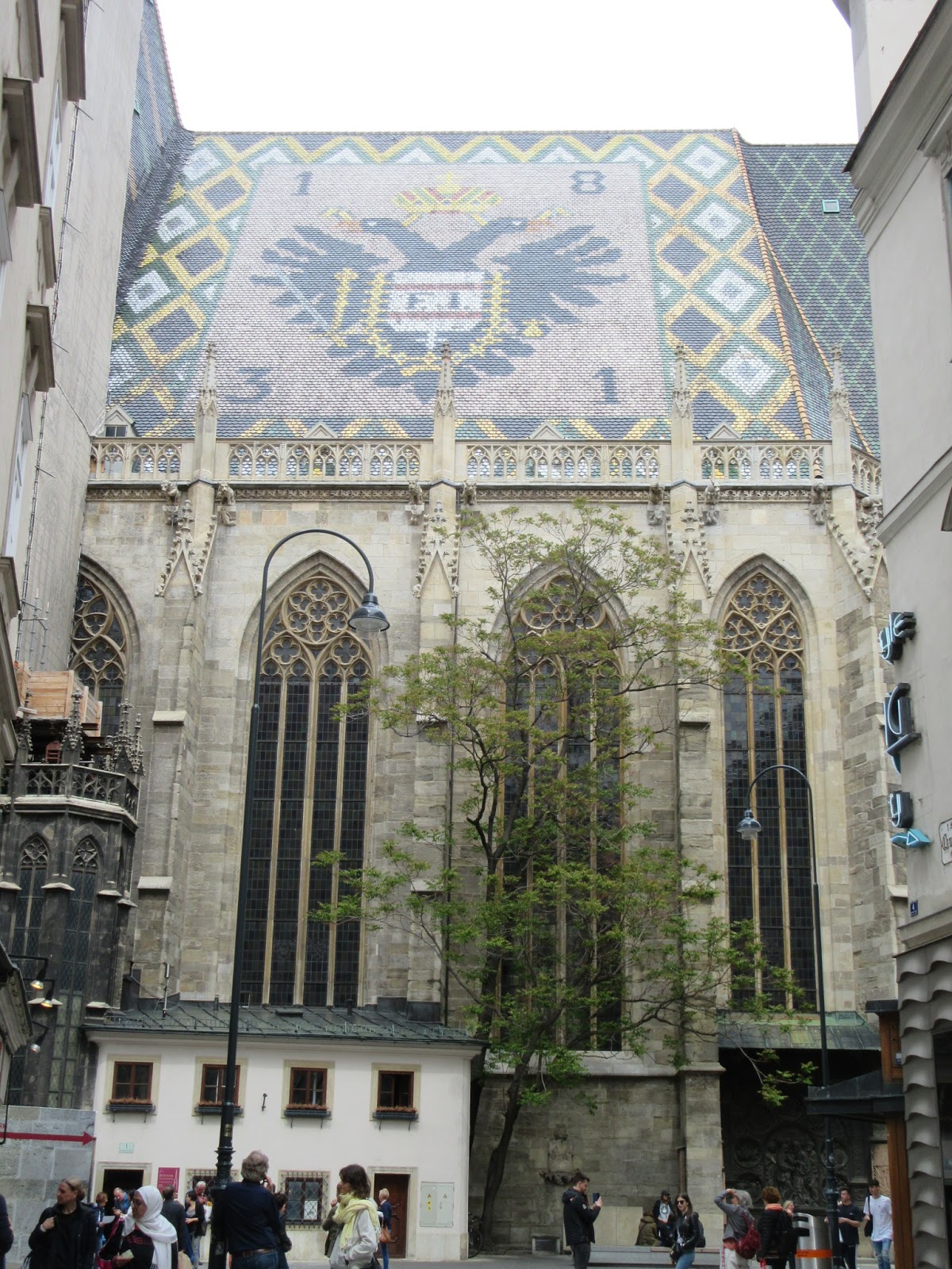 la Cathédrale Saint-Étienne , élevée de 1359 à 1446 possède une façade dépouillée, et des toits en tuiles vernissées